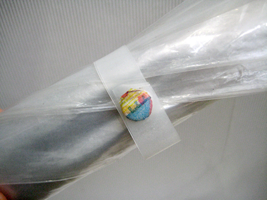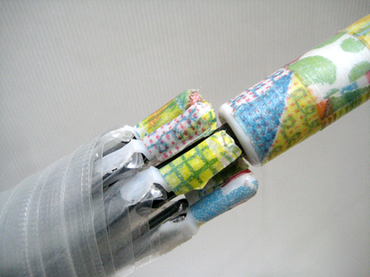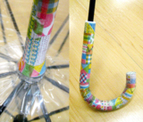 親方様が、ビニール傘をマスキングテープでデコって、オリジナルの傘に。