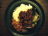 天空で育ったほうれん草と、天空で育ったいろんな野菜で作った肉味噌もどきで。