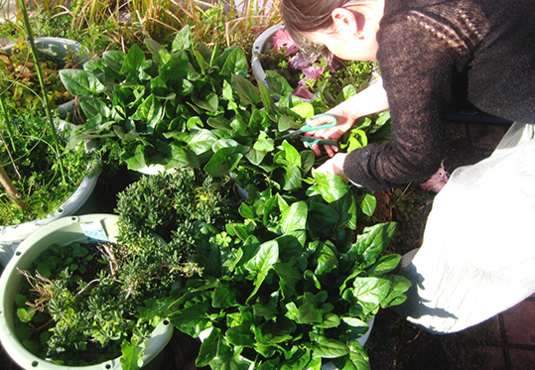 妖精にお願いしてほうれん草収穫。