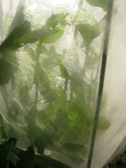 防寒用不織布の止め用にさしてた支柱に