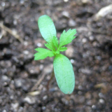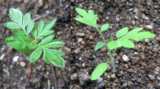 マリーゴールドの双葉&本葉でい。ギザギザが本葉ね♪