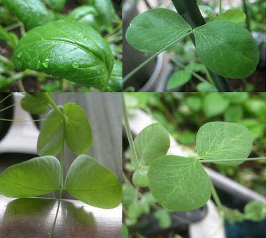 グリーンピースの葉っぱもあちこち育ったり、
