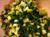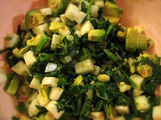 小蕪まるごと、小ぶりほうれん草好きなだけ、アボカド1個、好きなだけ生姜、