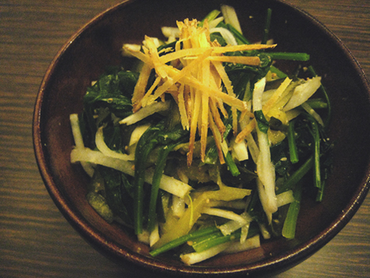 大根おろしを、醤油だったかポン酢だったかをかけて