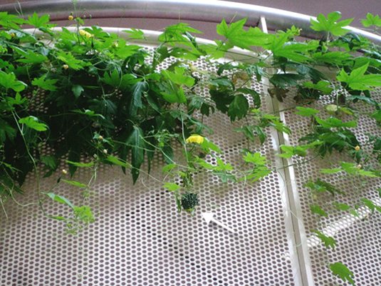 ゴーヤの蔓がウェイウェイ伸びてって