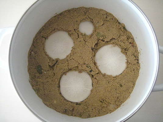 半分は4等分して糠床に。