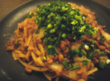 今回は、冷凍うどんを茹でて、焼きうどんにしました。