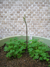 同じ鉢にて同居のニンニクは皆、土の下のほう、奥深くだので。実質広々。