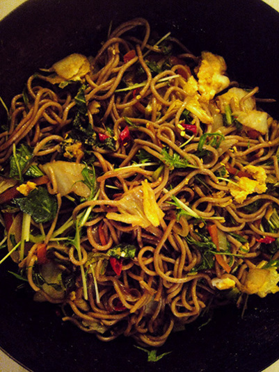 焼きそばと言っても、そば麺を蕎麦で作るのも好きなので、今日は焼き蕎麦。