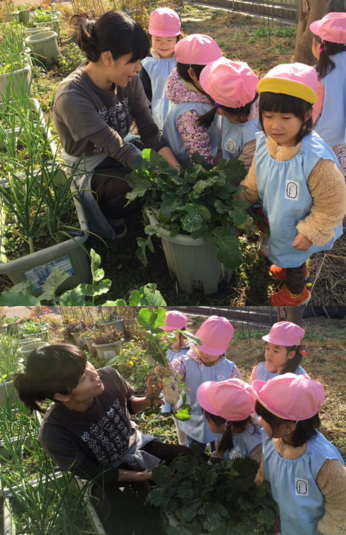 収穫したミニダイコンと共に。