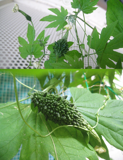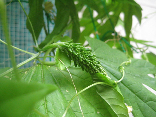 授粉したゴーヤがプクプク太り始めておる。