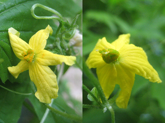 そして今日もせっせと、雌花を見つけては授粉。
