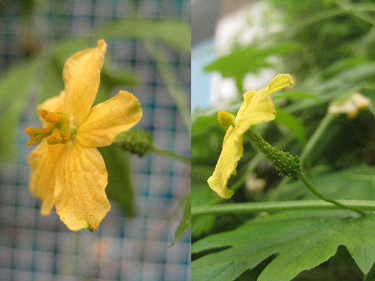 ゴーヤが、ナゼかやたら雌花が増えていたので、探して探して人工授粉。