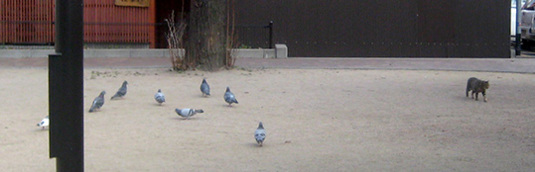 鳩と猫。ココの彼らにおいては、お互いには、あまり関心は無いようです。