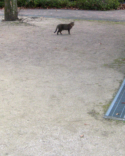 (画像3)二本脚と地域猫との距離は、今のところ、コレが限界か。