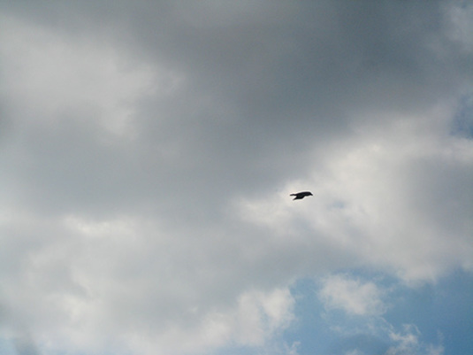 カラスとの距離は、かなり、遠いなー。飛び立ったアト。