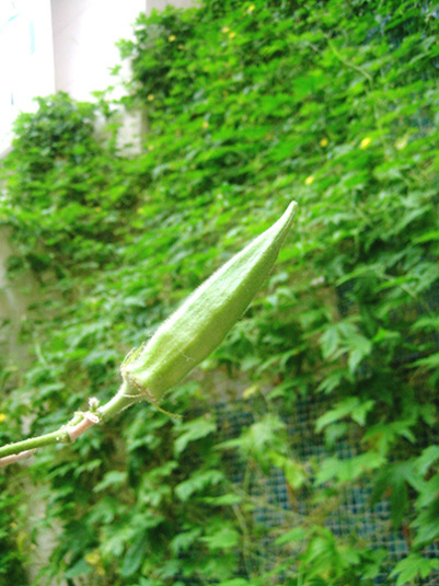 オクラが実をつけ、