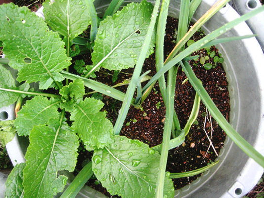 ニンニクの鉢に、植え直しまして。