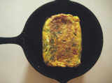 丸いフライパンでも、四角い卵焼きが出来ます。