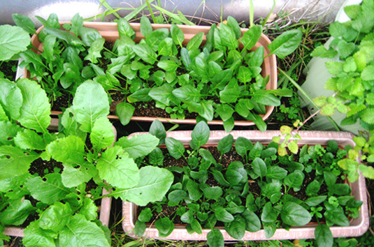律子さんも小松菜と水菜育ててる。