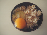 生姜飯。刻み生姜ですワイ。卵かけご飯、で、まず一杯。。