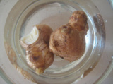 おろして余った生姜の塊を入れると、おろし生姜が付いてるせいで、水濁る。