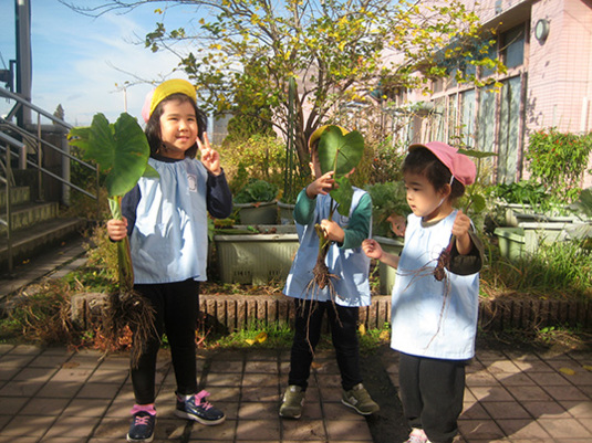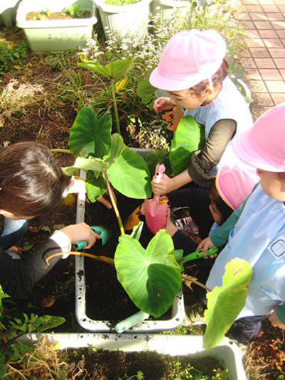 みんなが普段食べてる里芋って、こんな感じで生ってるんだねー。