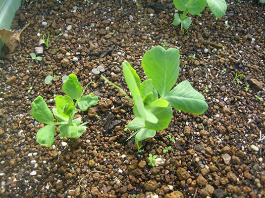 グリーンピースは、寒い時期の間に低い背丈で冬越えをさせるそうです。