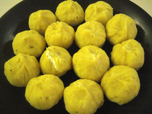 ラップ使って、くりくり栗のように丸め。