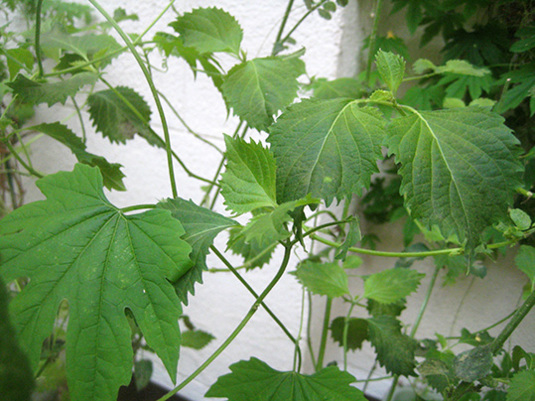 左側がゴーヤの葉、右側が大葉たち。