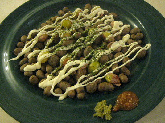 みそ。マヨ。唐辛子とゴマも入れ。オリーブオイルも粒マスタードも五香粉も入れ、ドレッシング。