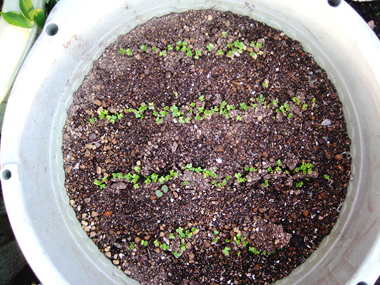 円形の鉢内に、すじまきwww