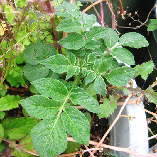 収穫終えて放置して野草が密集してた鉢内から、見覚えのある苗が。。出て、