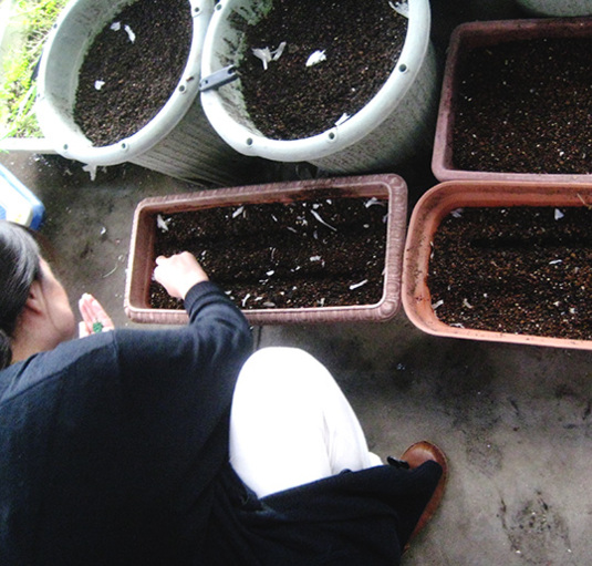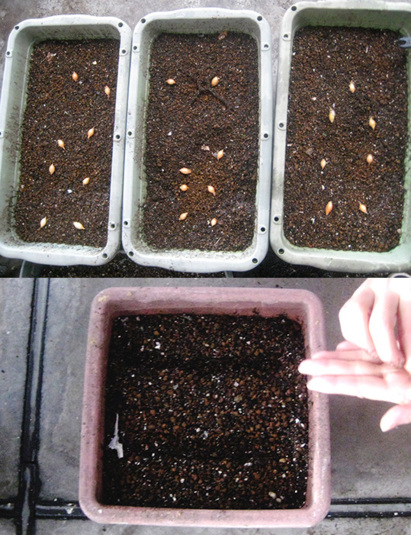 色んな植え方・まきかたをしましてね。すじまきやらてんまきやら。