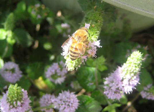 天空のHATAKEには、よく、ミントに、ミツバチたちが来てくれます。