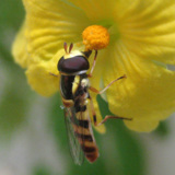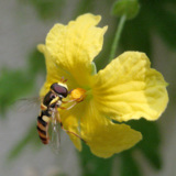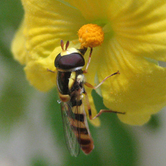 ヒラタアブが、ゴーヤの花に来てた。