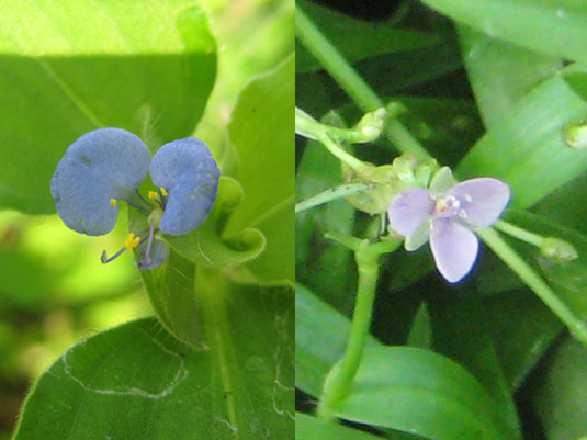 薄青紫色ではなく薄赤紫色?ツユクサの仲間?