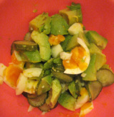 アボカドゆで卵サラダに、スライスキュウリではなく適当に切ったぬか漬けキュウリ。