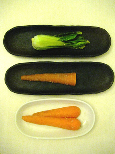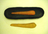 テーブルの上、人参に違いはないが、人参のマグネット。ニセモノです。