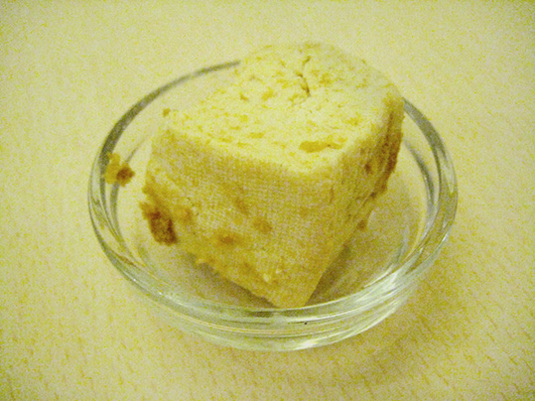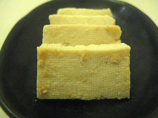 水切りした木綿豆腐のまわりに味噌を塗り込んで冷蔵庫数日。