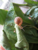 モロヘイヤ買ったらカタツムリの赤ちゃんいた。