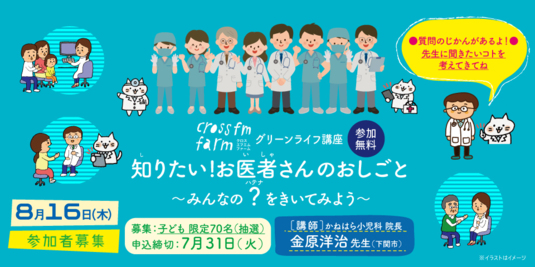 [締め切り7/31!!]グリーンライフ講座 「知りたい!お医者さんのおしごと~みんなの ?(ハテナ) をきいてみよう~」