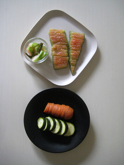 スイカは浅漬け(だし昆布と一緒に塩漬け。だし昆布だけで漬けても美味しいです)が