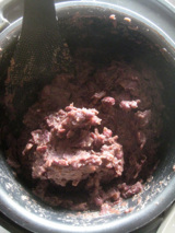 炊飯器(拙宅は3合炊きサイズ)に、小豆と水入れて、炊飯ボタン押すのみ。