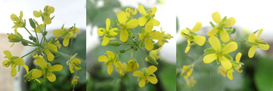 花が咲いて、のち、細長い果実が中央から天へ、ピーンッて伸びて