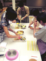 まずは下準備。テーブルごとに仕事分担。