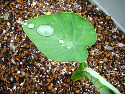 ハスの葉のようですが、サトイモです。