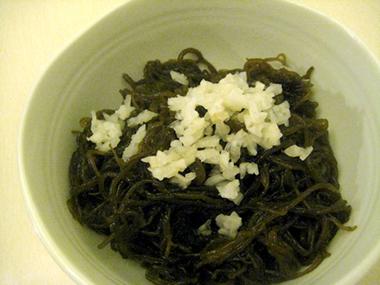 小刻みって、モズクと和え。メカブやアカモクでも美味しいです。