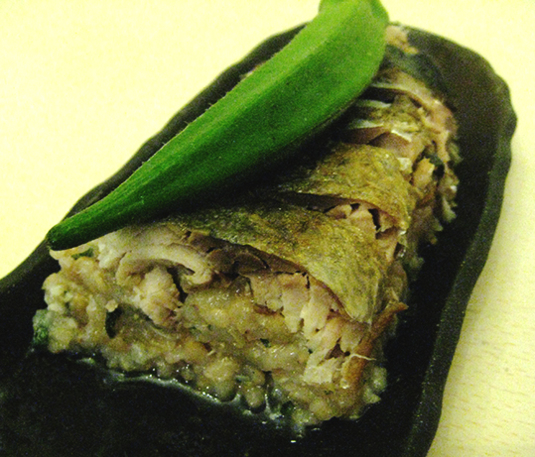 今回は、ゴマ、ミント、大葉、糠漬け大根細切れ、ゆず胡椒入りの酢飯作って、