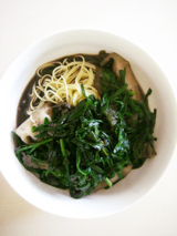 ほうれん草と、スイキャロの葉。ほうれん草も、根っこも捨てずに全部食します。